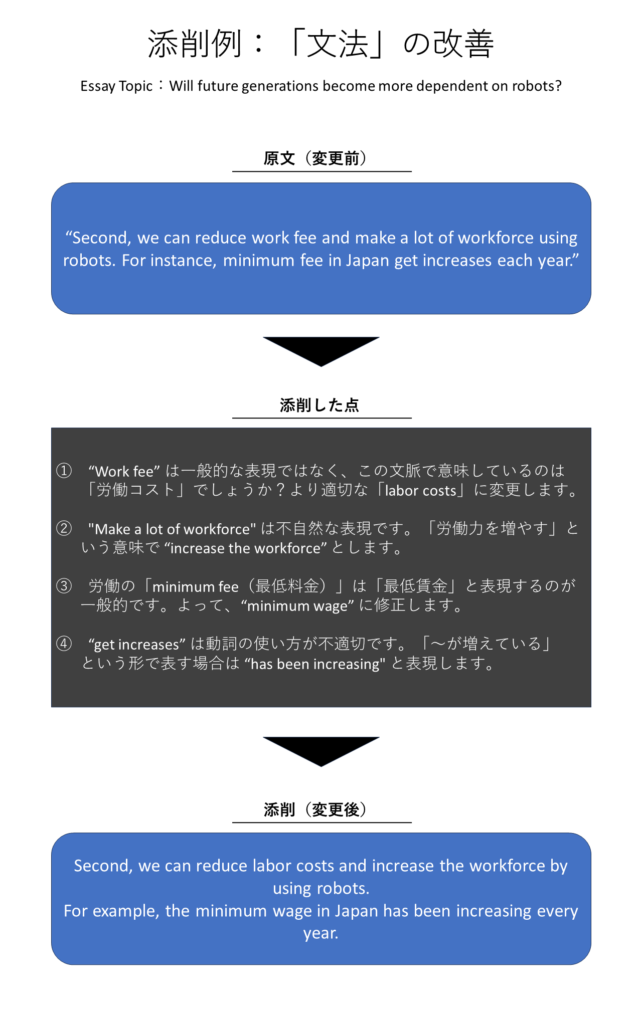 プロの添削でどれだけ英作文が向上するか、具体例を